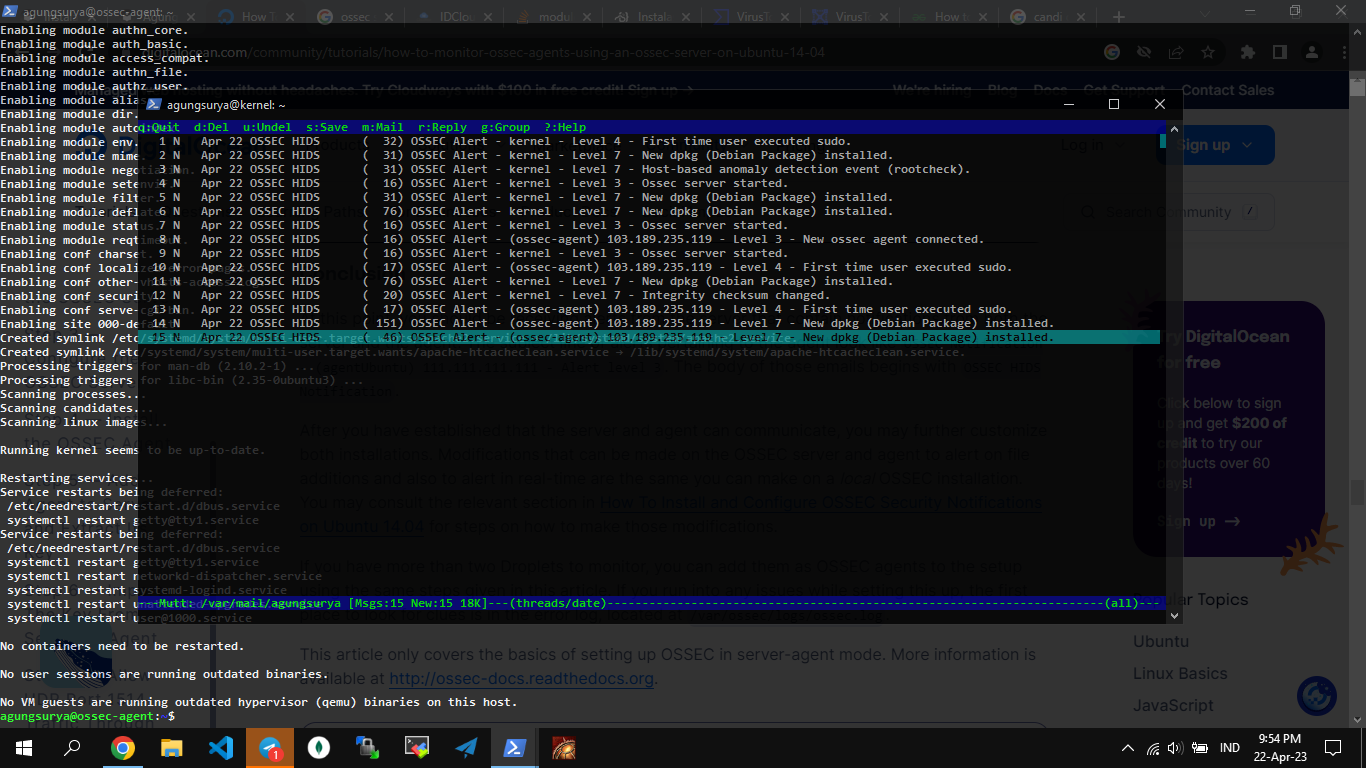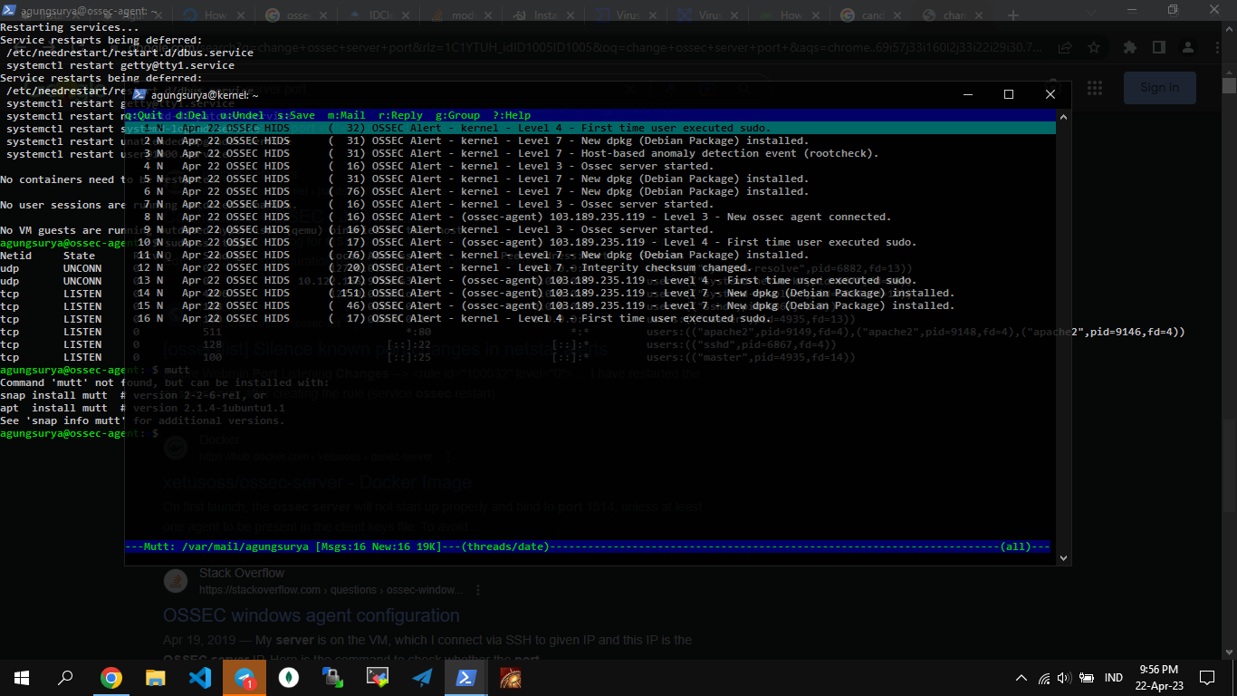 Restart OSSEC Sesudah semua modifikasi di lakukan restart OSSEC