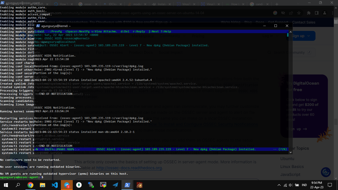 Apa keuntungan OSSEC? Di bawah ini contoh email notifikasi dari OSSEC, memperlihatkan ada yang mengubah file /var/ossec/etc/ossec.conf.