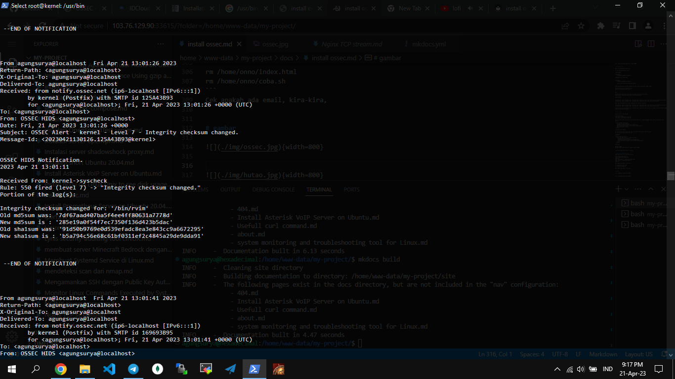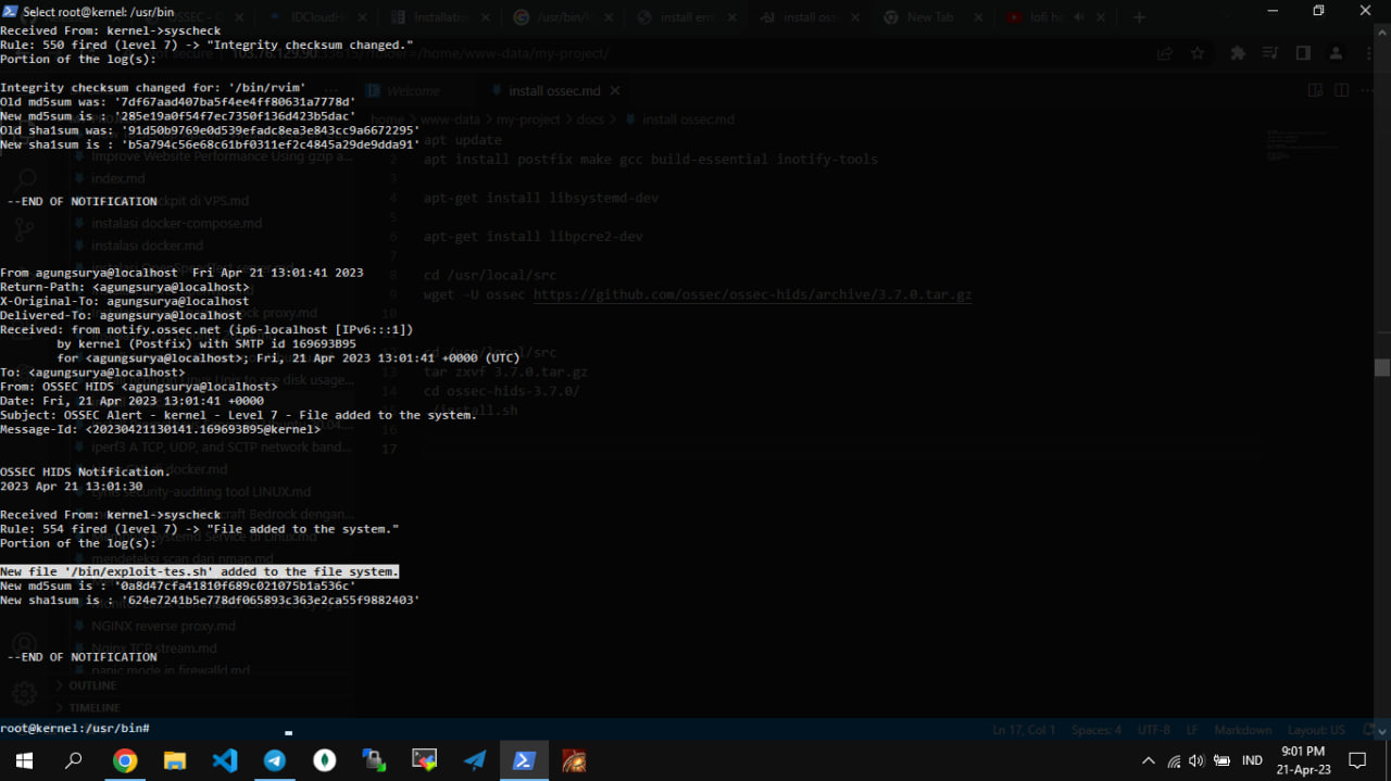 Konfigurasi OSSEC untuk Real-time Alerts saat ada modifikasi File