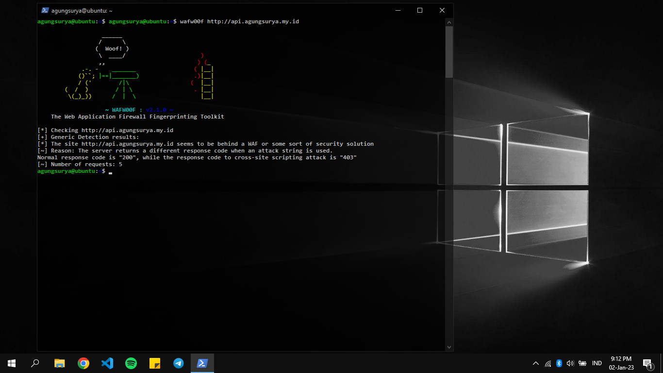 Wafw00f adalah singkatan dari "Web Application Firewall Detection Tool". Ini adalah alat open-source yang digunakan untuk mendeteksi jenis firewall aplikasi web yang digunakan pada server web. Alat ini bekerja dengan mengirimkan serangkaian permintaan ke server web dan menganalisis respons yang diterima. Wafw00f dapat mengenali sejumlah besar firewall aplikasi web, termasuk ModSecurity, Akamai, F5 BIG-IP, Cloudflare, Barracuda, dan banyak lagi. Dengan menggunakan wafw00f, pengguna dapat menentukan apakah suatu situs web dilindungi oleh firewall aplikasi web, dan jika ya, jenis firewall apa yang digunakan. Hal ini dapat membantu pengguna untuk mengidentifikasi potensi kelemahan dalam konfigurasi firewall dan mengambil tindakan yang diperlukan untuk meningkatkan keamanan situs web mereka.