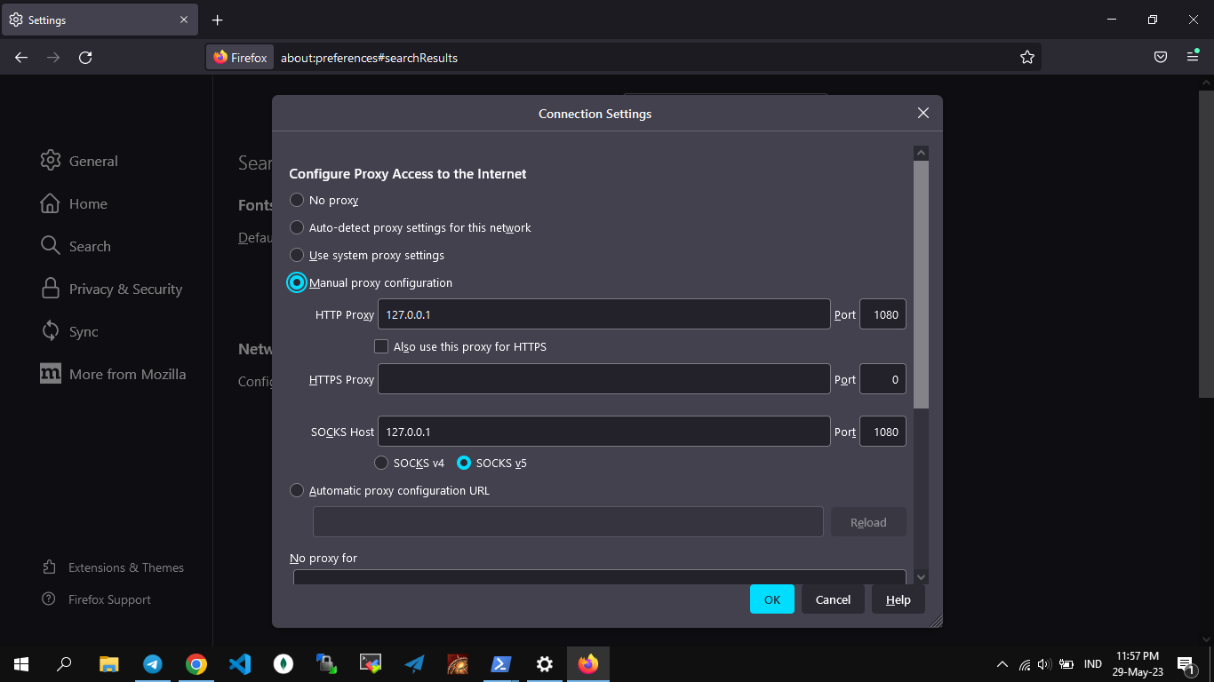 Now in your Firefox browser, go to Preferences > Advanced > Network > Settings.