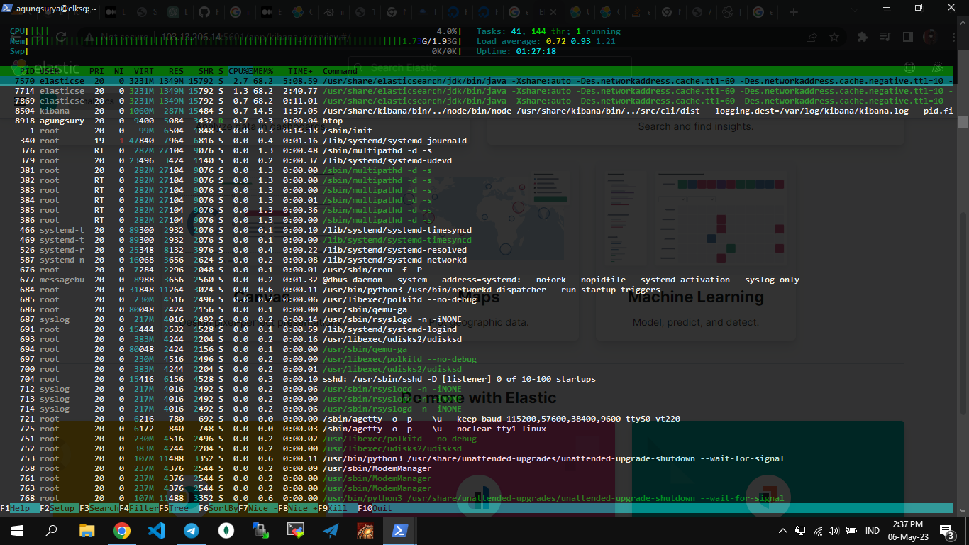 Command ini akan menginstal Filebeat, yang merupakan alat untuk mengumpulkan dan mengirimkan log dari sistem Anda ke Elasticsearch. Dengan menginstal Filebeat, Anda akan dapat memantau aktivitas sistem Anda dengan lebih baik, dan memastikan bahwa Elasticsearch dan Kibana menerima data log yang akurat dan terbaru.