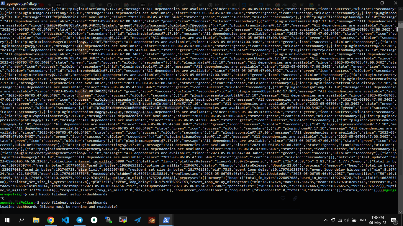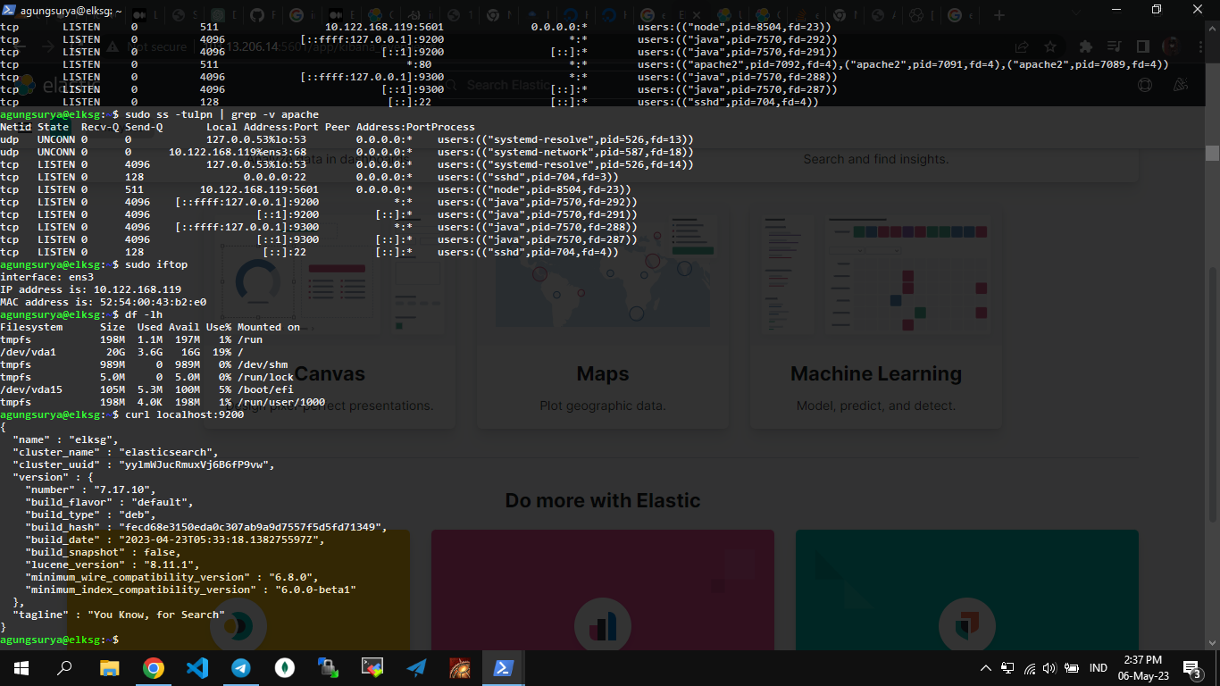 Command ini akan menginstal Filebeat, yang merupakan alat untuk mengumpulkan dan mengirimkan log dari sistem Anda ke Elasticsearch. Dengan menginstal Filebeat, Anda akan dapat memantau aktivitas sistem Anda dengan lebih baik, dan memastikan bahwa Elasticsearch dan Kibana menerima data log yang akurat dan terbaru.