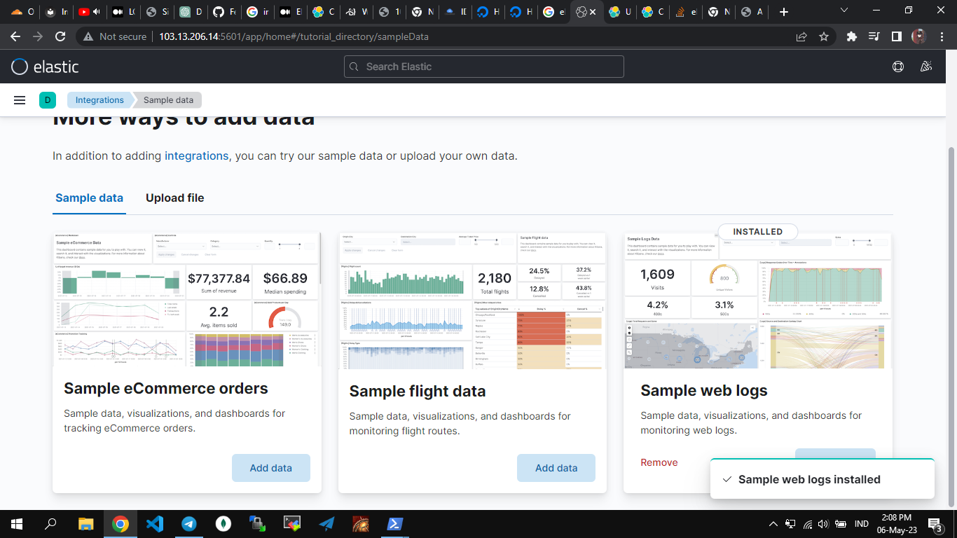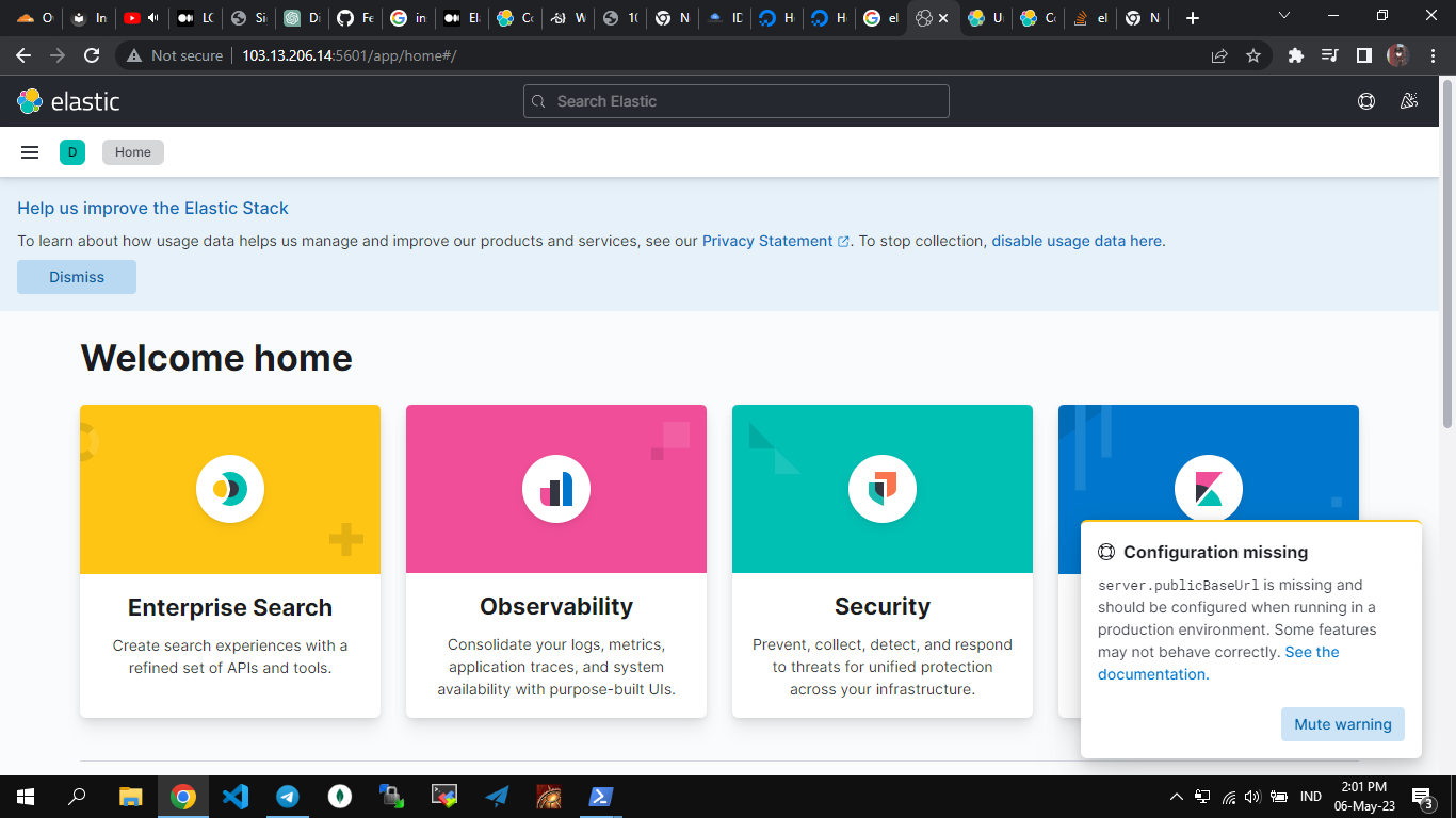 Sekarang Kibana sudah siap digunakan! Untuk mengakses antarmuka web Kibana, buka browser dan masukkan alamat IP atau nama domain server Ubuntu 20.04 Anda, diikuti dengan port 5601. Contoh: http://:5601.