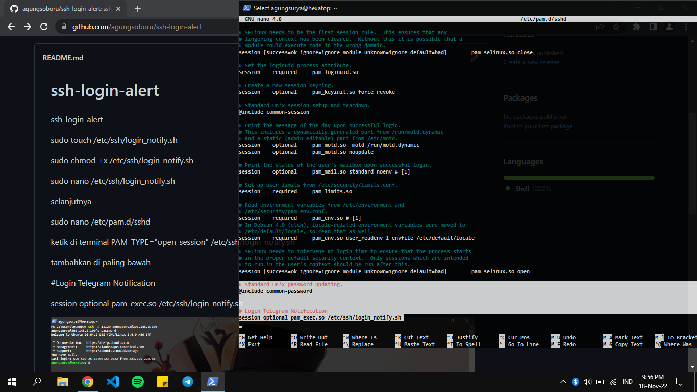pada konfigurasi pam ssh di /etc/pam.d/sshd tambahkan